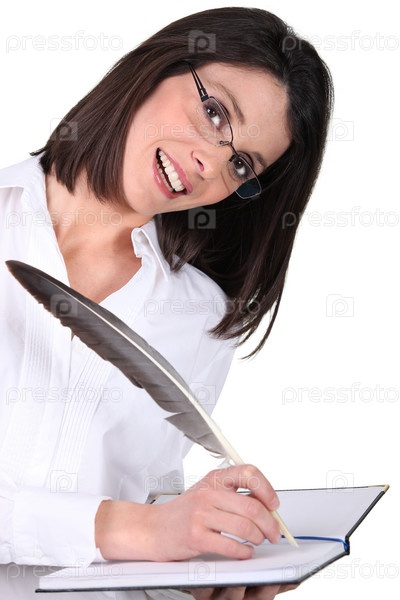 Женщина пишет пером