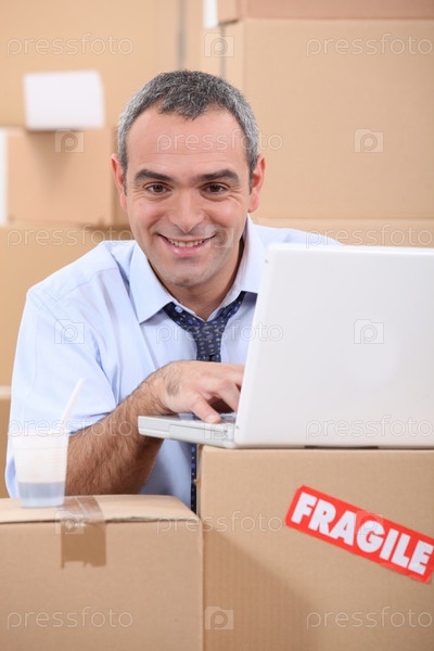 Мужчина покупает новую мебель в Интернете