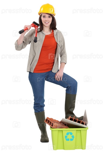 Женщина с болторезом и отходами для переработки