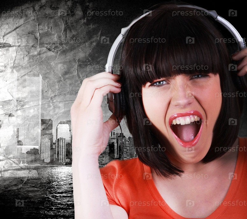 Женщина слушает музыку в комнате