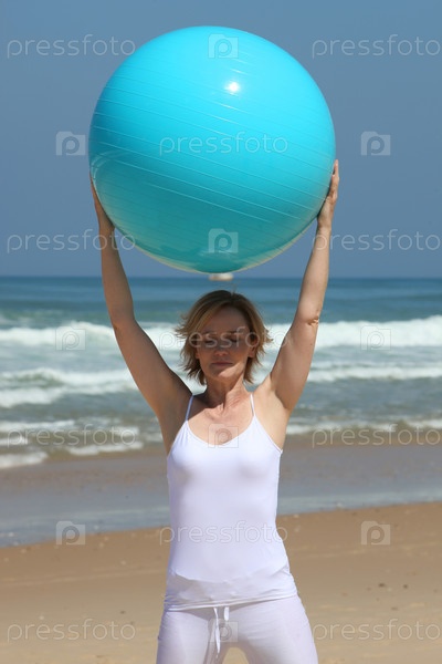 Женщина держит мяч для тренировки