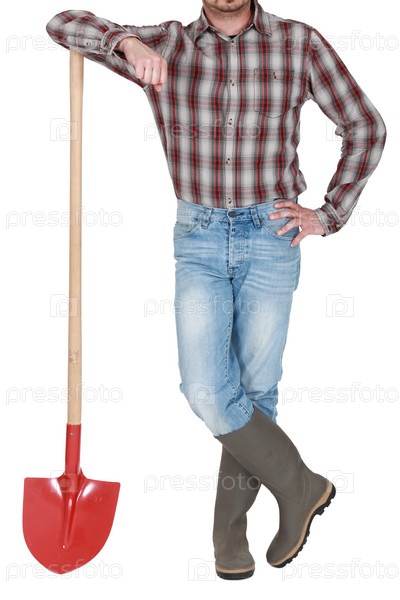 Ремесленник опирается на лопату