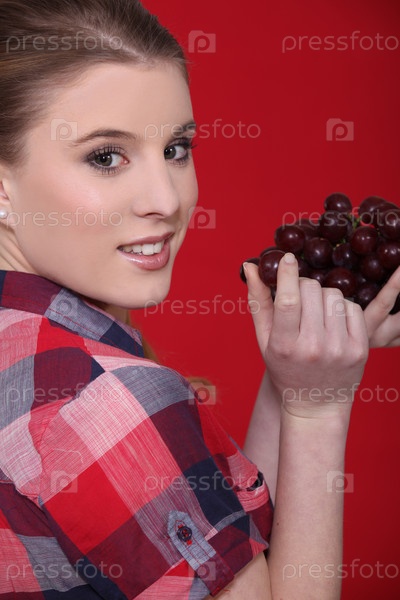 Молодая женщина ест виноград
