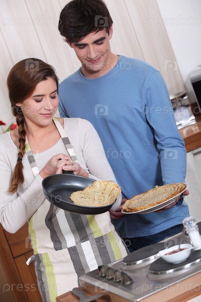 Милая пара делает блины