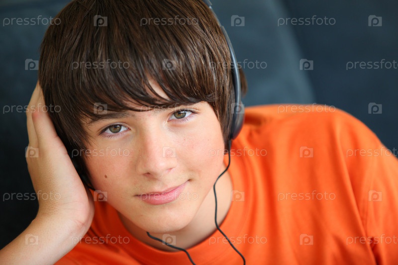 Подросток слушает музыку в наушниках