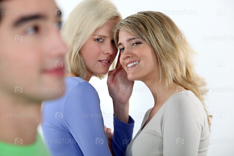 Молодые женщины сплетничают о мужчине