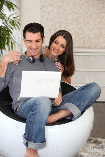 Пара на диване с компьютером