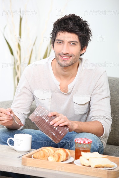 Человек завтракает