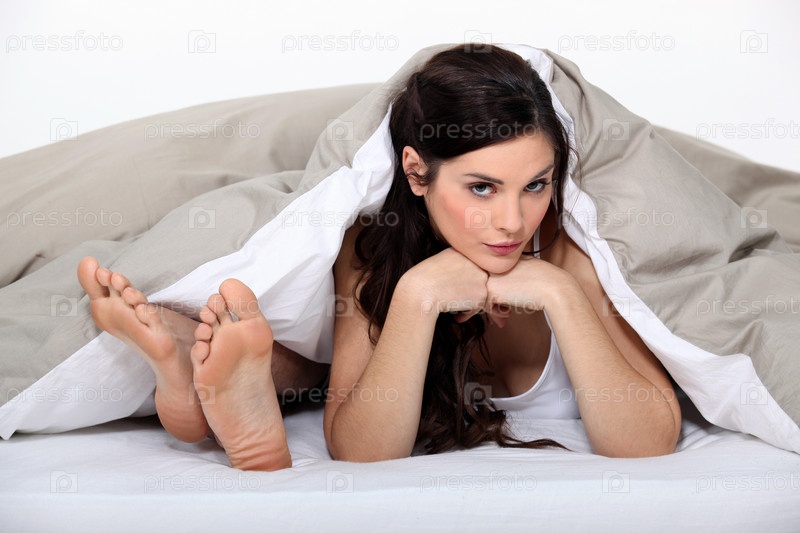 Сердитая женщина на кровати