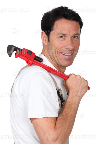 Рабочий держит инструмент через плечо