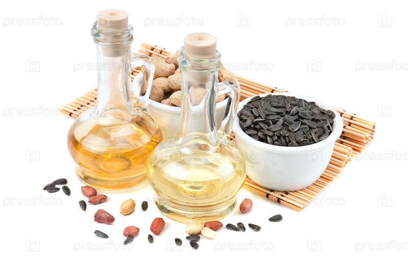 Подсолнечник, арахис и бутылка масла
