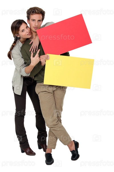 Пара с красной и желтой пустой карточкой