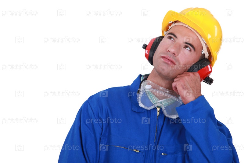 Задумчивый строительный рабочий