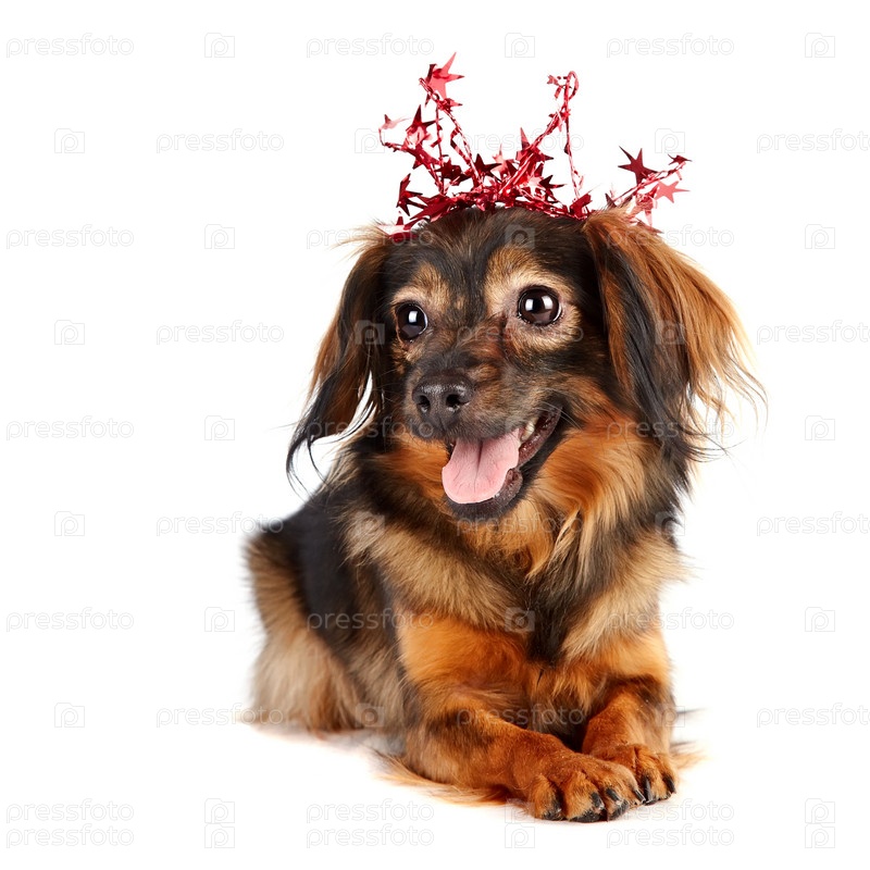 Декоративная собака в короне со звездами
