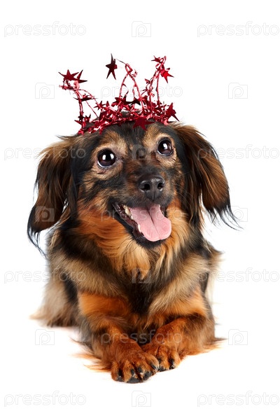Декоративная собака в короне со звездами