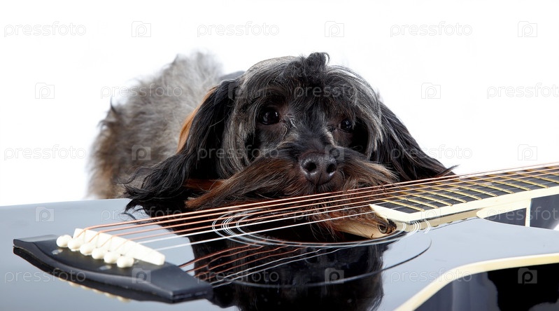Грустная собачка и гитара