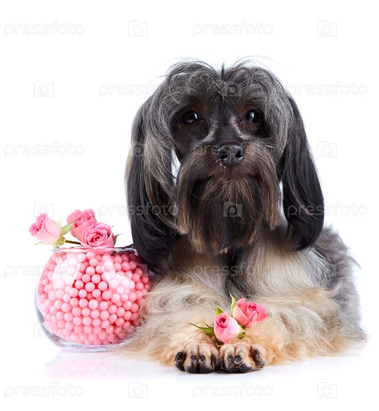 Декоративная собака и Ваза, бусины и розы