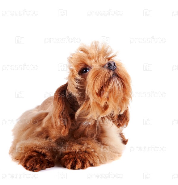 Декоративная рыжая собака смотрит вверх
