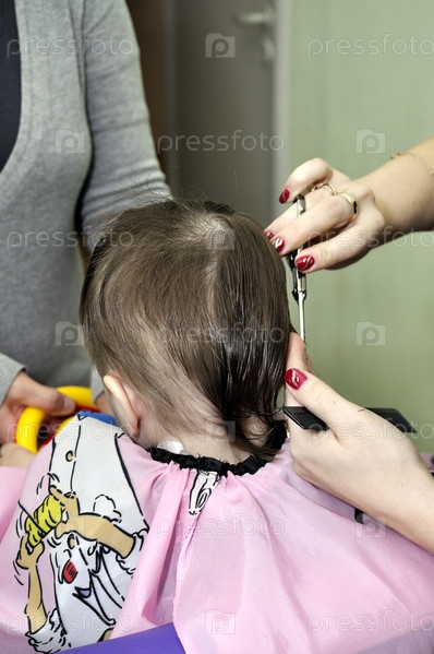 Годовалый мальчик в парикмахерской