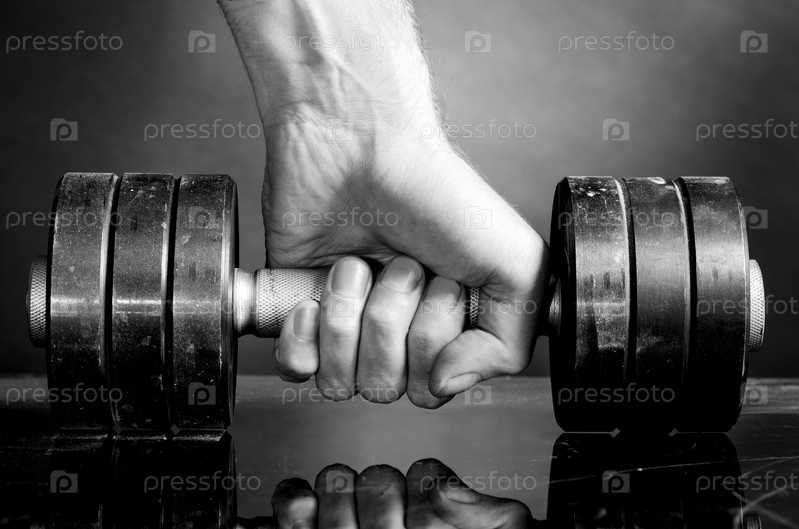 Мужская рука держит металлическую штангу