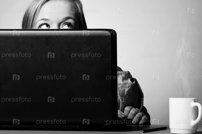 Офисный работник с ноутбуком