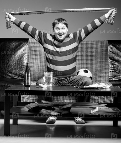 Футбольный фанат на диване