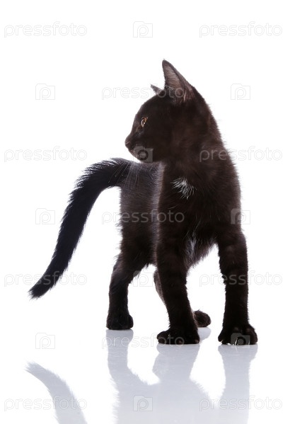 Черный котенок на белом фоне