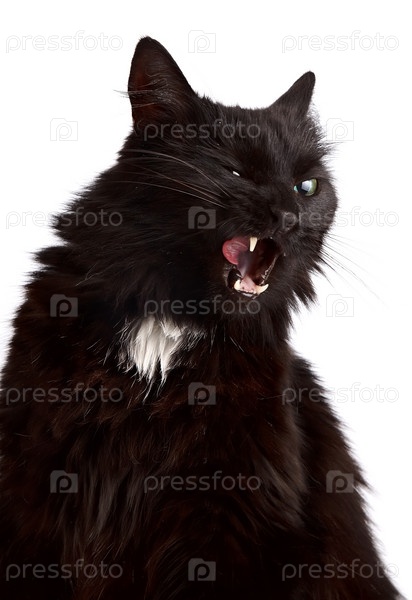 Жмурящийся кот облизывает губы