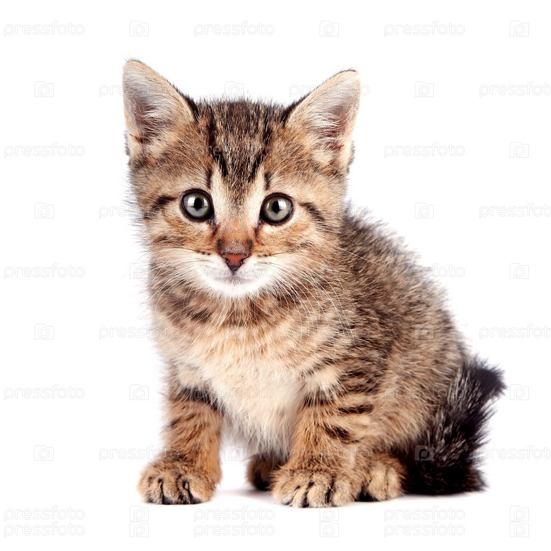 Полосатый маленький котенок сидит