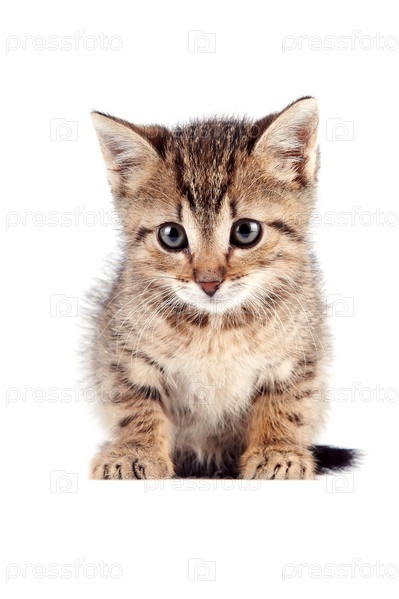 Полосатый котенок сидит