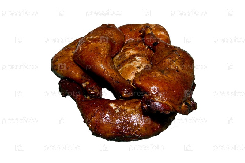 Копченые окорочка на белом фоне