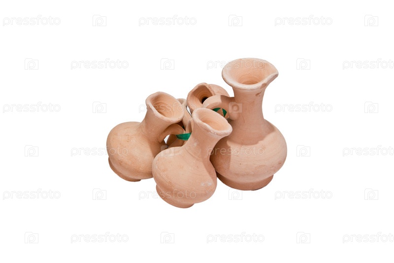 Небольшие глиняные горшки на белом фоне