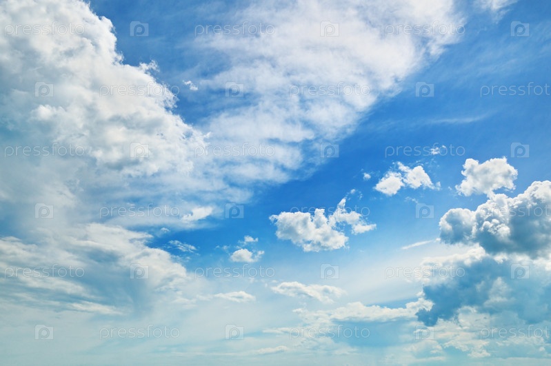 Пушистые облака в синем небе