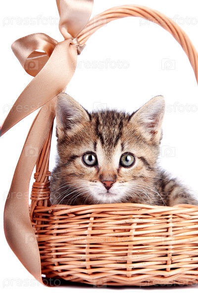 Полосатый котенок в корзине