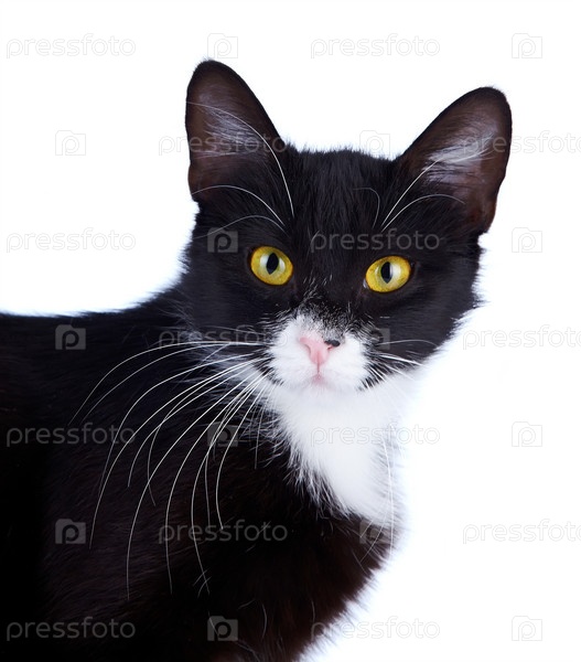 Черно-белая кошка с желтыми глазами