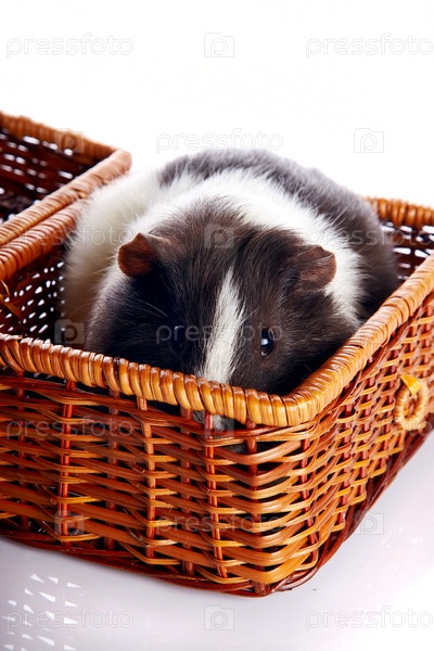 Морская свинка в плетеной корзине