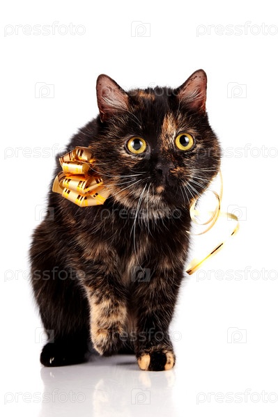 Кошка с золотым бантом