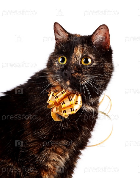 Портрет кота с золотым бантом