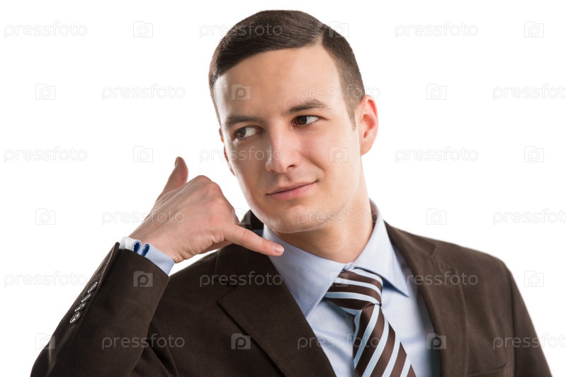 Бизнесмен показывает знак телефона