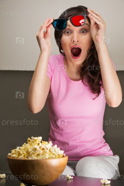 Молодая женщина смотрит 3D-фильм