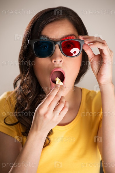 Молодая женщина смотрит 3D-фильм