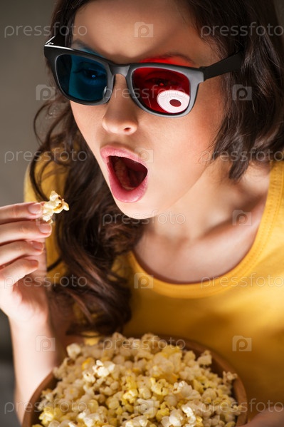 Молодая женщина смотрит 3D-фильм