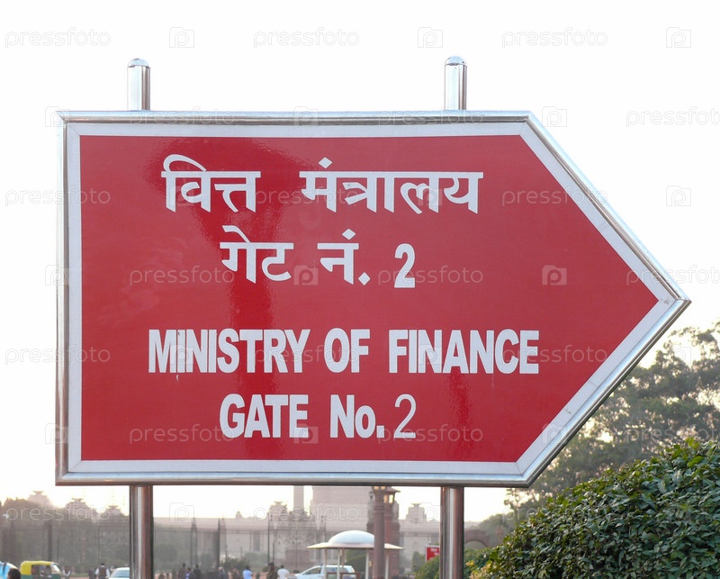 Дели. Указатель к зданию Министерства финансов Индии