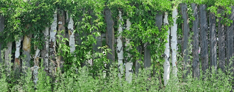 Деревянный забор, поросший плющом