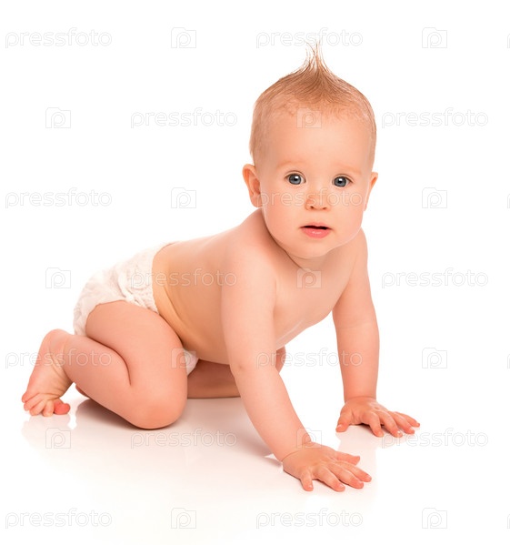 Счастливый красивый ребенок в подгузнике, изолировано