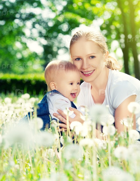 Счастливая семья. Мать и ребенок обнимаются на природе