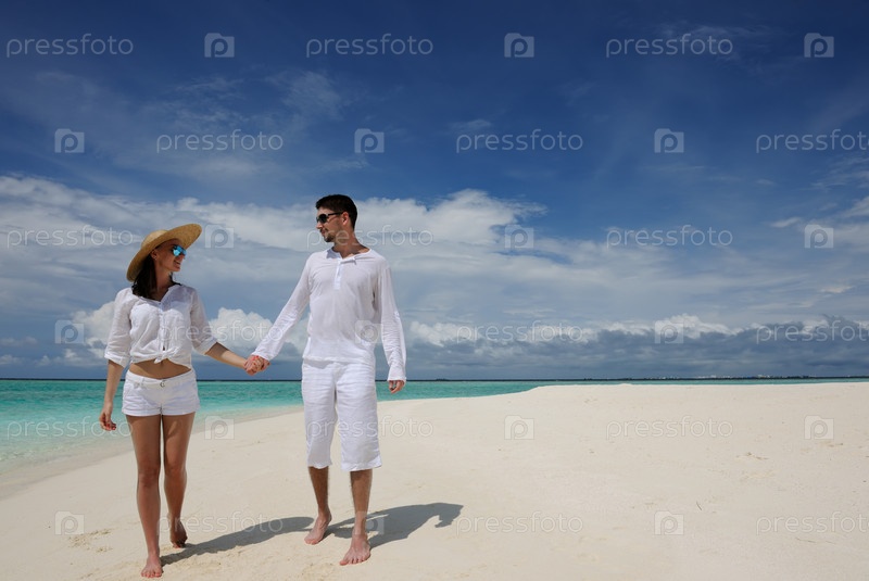 Пара на пляже на Мальдивах
