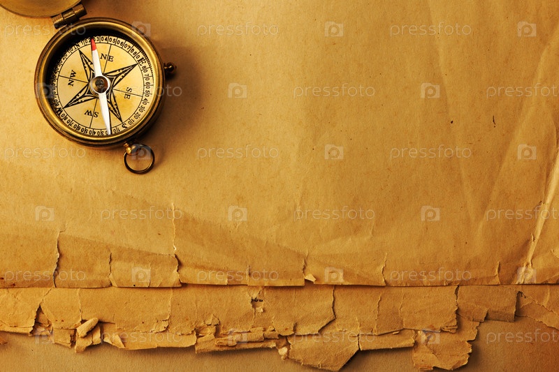 Антикварный медный компас на старом фоне