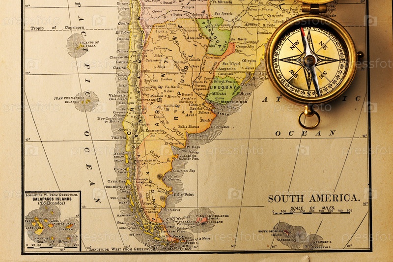 Антикварный компас на старой карте XIX века