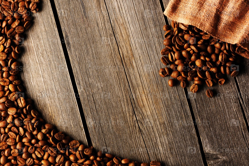Кофейные зерна и мешок в качестве фона